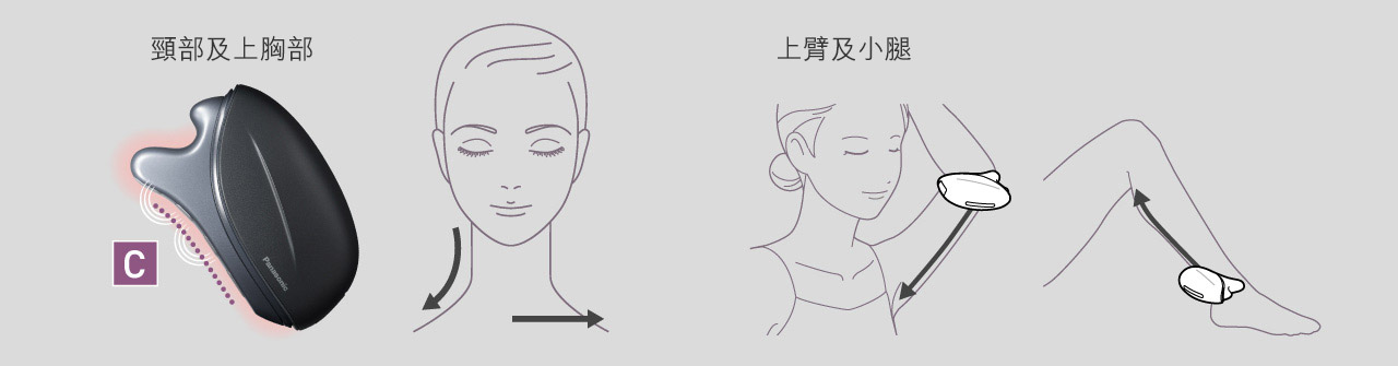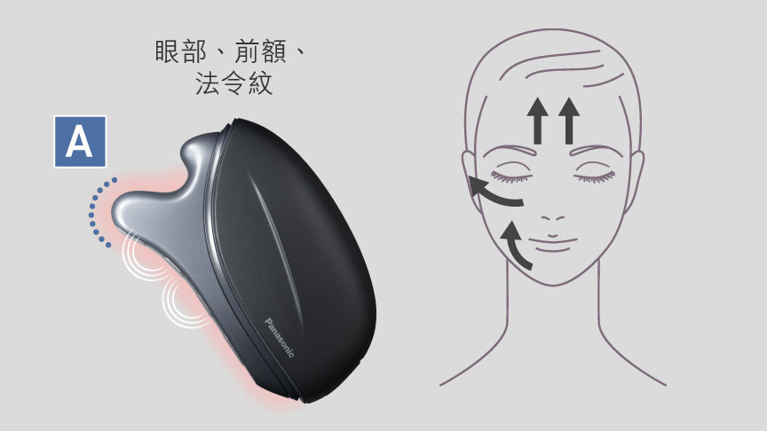 獨特的形狀和溫度模仿了美容師的手和手指,向上移動時,享受舒適的提拉護理。