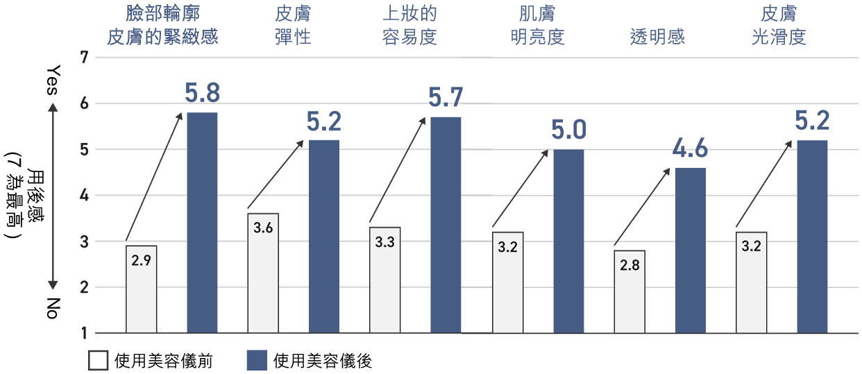 【測試方法】一次使用,使用個人護膚品及 WARM TREATMENT 模式,對半邊臉部進行 4 分鐘的護理。