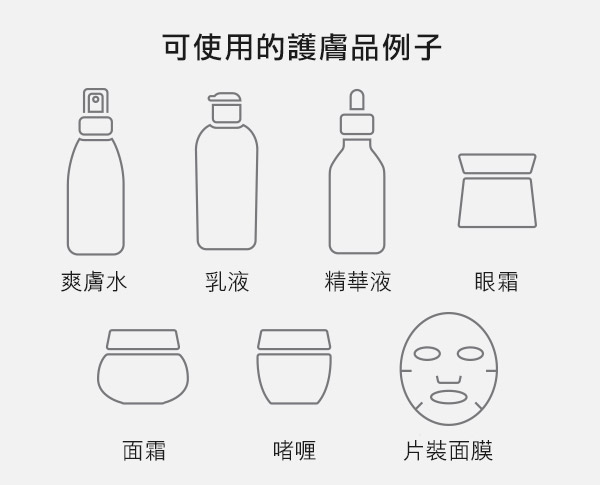 所示護膚品僅供參考 (可搭配超過一種護膚品同時使用)