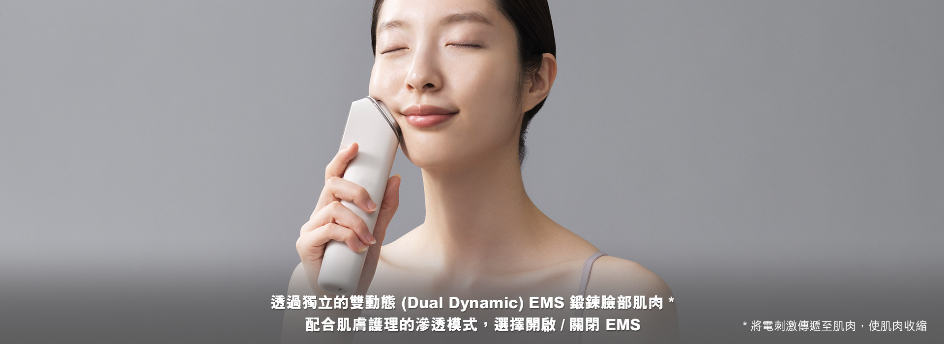 選擇「MOIST 模式」時,可開啟 EMS 提拉肌膚*3。同時進行臉部肌肉訓練*4。