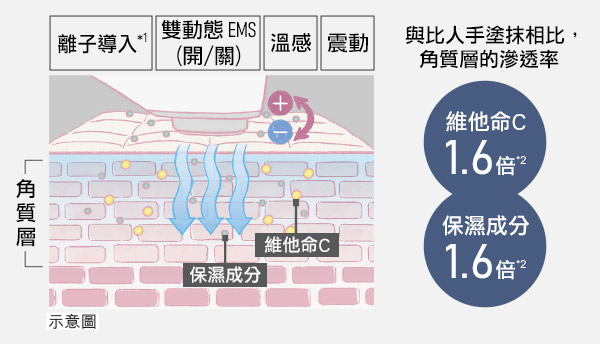 實現人手塗抹無法達到的滲透至角質層的高滲透