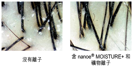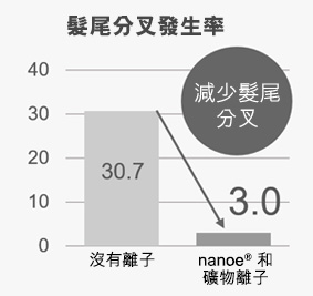 nanoe® 和礦物離子能夠緊緻毛鱗片,減少對頭髮的摩擦損傷,例如分叉。