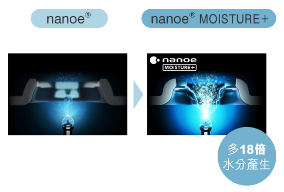 進一步超越 nanoe® 滲透力。通過改變生成方法,水分子生成量比傳統方法增加了 18 倍。