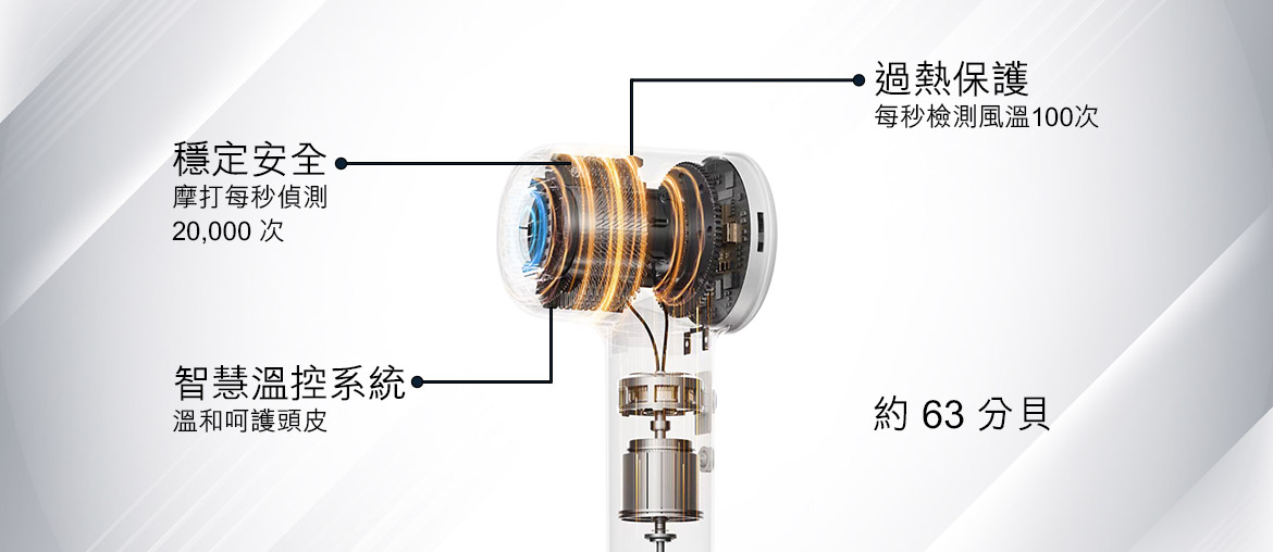 - 每分鐘103,000 轉高速摩打,快速乾髮,不傷髮質