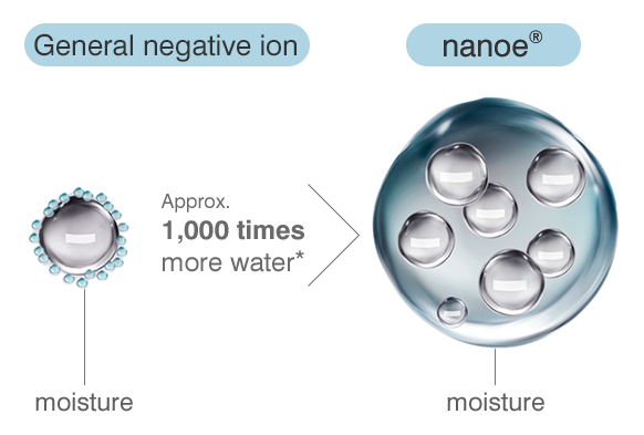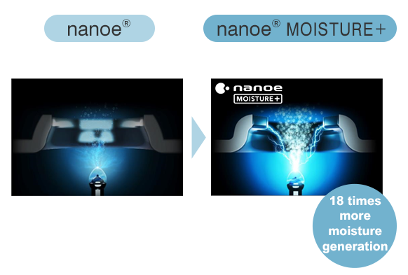 Further enhanced penetration beyond nanoe®. By changing the generation method, moisture generation has increased 18 times compared to conventional methods.