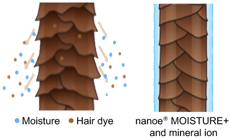 nanoe® MOISTURE+ and Mineral boosts cuticle adhesion, helping prevent friction damage caused by brushing, etc. Daily use will yield smooth, sleek hair that your fingers can easily comb through.